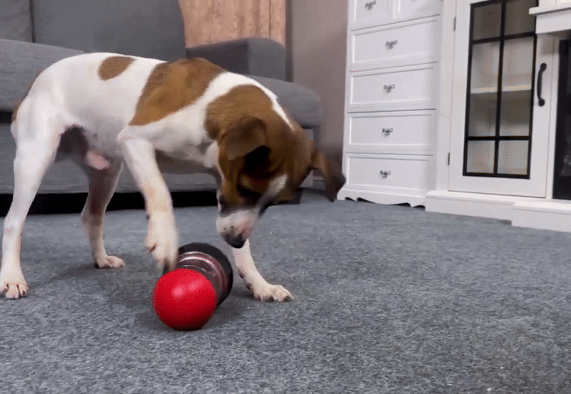 You can rotate the internal treat dispenser to make the opening wider or smaller, making it easier or more challenging for your pet to get the treat.